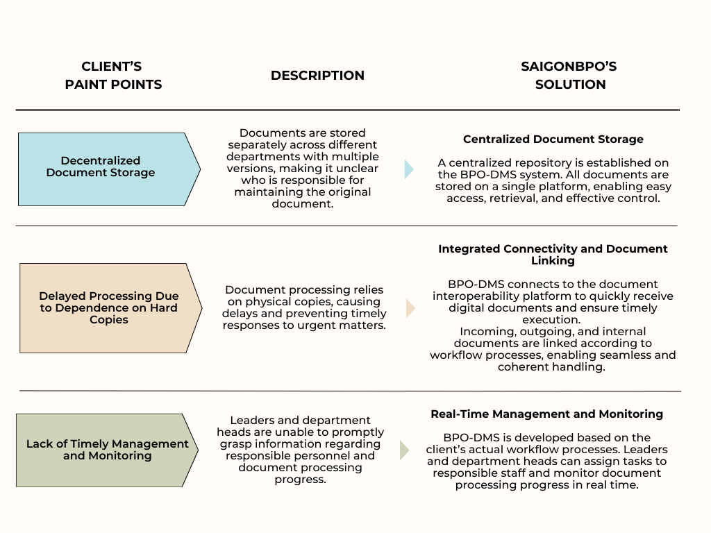 Unlike generic “one size fits all” document management software, BPO-DMS was designed and customized by SAIGONBPO to directly solve the operational challenges faced by the client.